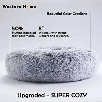 Western Home Faux Fur Original Calming Dog & Cat Bed for Small Medium Large Pets, Indoor Cats, Anti Anxiety Donut Cuddler Round Warm Washable (20", Light Grey)
