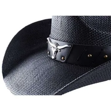 Western Outback Cowboy Hat Men's Women's Style Straw Felt Canvas (Black Bull)