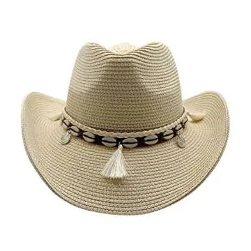 Western Straw Cowboy Hat for Women Beach Sun Hat for Men Wide Brim Fedora Hat Cowgirl Hats Summer Panama Hat Beige