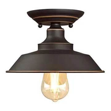 Vintage-style one-light indoor semi flush mount ceiling light fixture with oil rubbed bronze finish with highlights