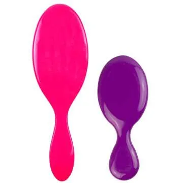 Show more Introducing the Wet Brush Original and Mini Hair Brush in stunning pink and purple—a dynamic duo designed to revolutionize your hair care routine! With ultra-soft IntelliFlex bristles, this brush effortlessly glides through wet or dry hair, minimizing pain and maintaining the health of your hair. The innovative design not only detangles but also helps reduce breakage by 45% and requires 55% less effort for effortless styling. Say goodbye to hair struggles and hello to happier, healthier locks!