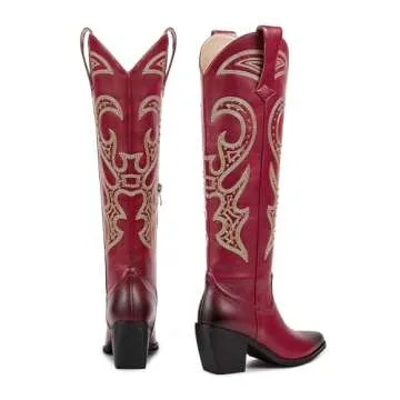 wetkiss Red Cowgirl Boots for Women Red Cowboy Boots for Women Red Cowboy Cowgirl Boots Mid Calf Cowboy Cowgirl Boots Red Western Boots for Women Knee High Tall Cowgirl Boots Red Boots