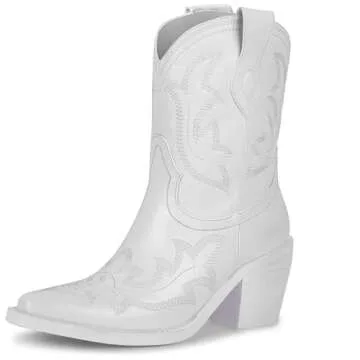 wetkiss White Cowgirl Boots for Women Cowboy Boots White Boots Booties White Western Boots Booties for Women Short Ankle Cowboy Boots Mid Calf Cowgirl Cowboy Booties Boots