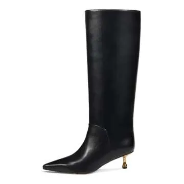 Show moreStep boldly into every season with the Wetkiss Women's Black Knee High Boots. Crafted from soft PU leather, these chic knee-high boots offer a stunning fusion of style and comfort. With their breathable lining and cushioned insole, these boots ensure that you experience premium comfort whether you're dancing the night away or enjoying a casual day out. The standout golden kitten heel adds an element of modern glamour that transforms any outfit into a head-turner. Perfect for a myriad of occasions, from parties to daily wear, these boots are set to become your go-to pair.