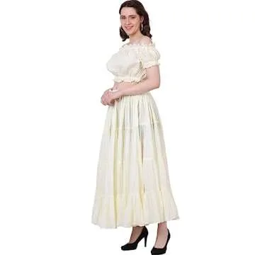 Wevez® Women's Plus Size Gypsy 25 Yard Long Flowy Solid Color Renaissance fair Skirt, Off-White