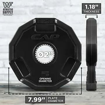 Show moreIntroducing the WF Athletic Supply 12-Sided Rubber Coated Grip Plate, your ultimate companion for weightlifting and strength training. Designed with precision and durability in mind, this Olympic weight plate is not only aesthetically pleasing but also finely crafted to ensure that it fits securely on any standard 2-inch Olympic barbell. The innovative 12-sided design prevents rolling when placed on the ground, providing a safer workout environment. The rubber coating not only protects your floors from scratches but also adds a layer of comfort when gripping the plates during exercises. Lift in confidence knowing that these plates are engineered to withstand heavy use in home gyms, commercial gyms, and anywhere fitness enthusiasts congregate.