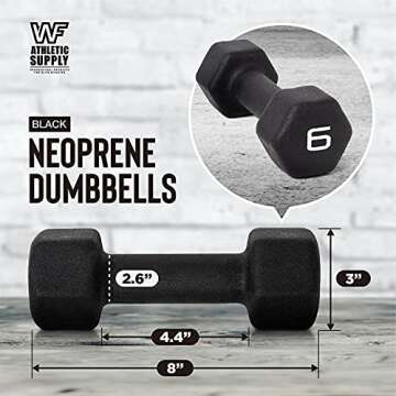 WF Athletic Supply BLACK Neoprene Dumbbells, Non-Slip & Hex Shape, Great for Strength Building & Weight Loss, Perfect for Home Use and Small Personal Training Studio