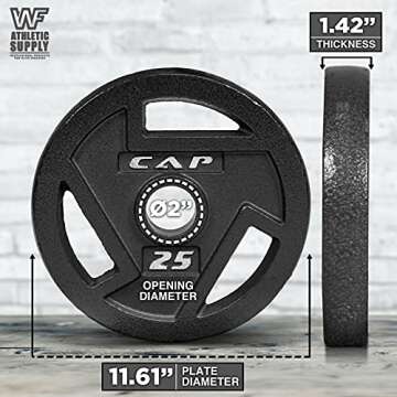 WF Athletic Supply Cast Iron 2-Inch Olympic Grip Plate for Strength Training, Muscle Toning, Weight Loss & CrossFit - Charcoal, 25LB, Set of 2