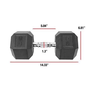 WF Athletic Supply Rubber Coated Solid Steel Cast-Iron Pair Dumbbells, Rubber Hex Dumbbells, Hex Weights Dumbbells for Muscle Toning, Full Body Workout, Home Gym Dumbbells, Pair