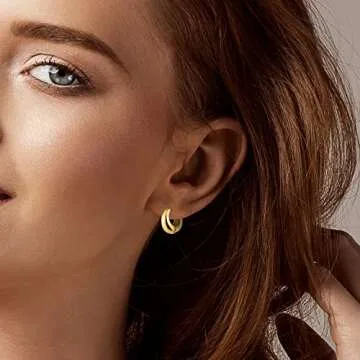 Wgoud 6 Pairs Gold Hoop Earrings Set for Women, 14K Gold Plated Hypoallergenic Lightweight Chunky Open Huggie Hoops Earrings Jewelry for Gift. (3 gold waterdrop)