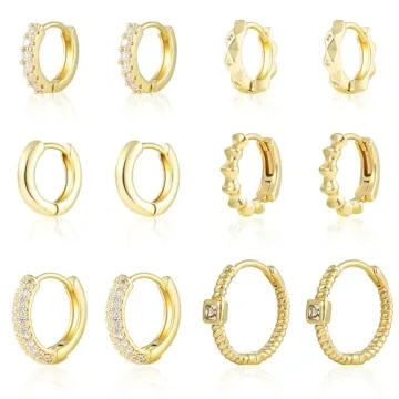 Introducing the elegant Wgoud Small Gold Hoop Earrings Set, a collection that redefines chic sophistication with six pairs of meticulously crafted huggie hoop earrings. Each pair features stunning AAAAA quality cubic zirconia stones that sparkle beautifully, framed in luxurious 14K gold plating. The earrings come in various sizes with an inner diameter ranging between 7mm to 10mm and an outer diameter from 10mm to 13mm, ensuring an ideal...