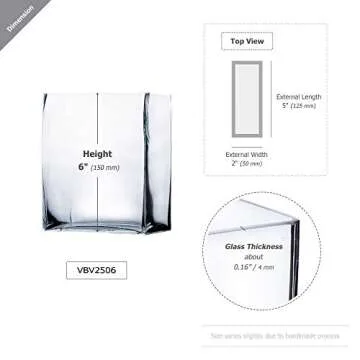 WGV Glass Rectangle Block Vase, Width x Length 2" x 5", Height 6", Clear Floral Planter Container Votive Candle Holder Wedding Party Event, Home Office Decor, 1 Piece
