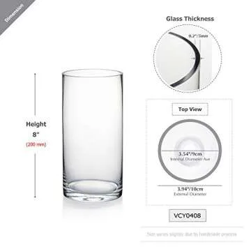 WGVI Quality Thick Weighted Clear Cylinder Glass Vases, 4" W x 8" H, Flower Arrangement Floating Candle Holders Wedding Centerpieces Terrarium Planter Floral Pen Brush Storage Container, 1 Piece