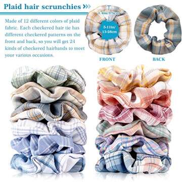 Whaline 12 Colors Plaid Hair Scrunchies Macaron Hair Tie Ropes Cotton Fabric Elastic Hair Bands Vintage Ponytail Holders Fashionable Hair Accessories for Girls Women Teens