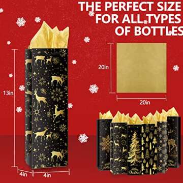 Whaline 12Pcs Christmas Wine Bottle Gift Bags with Gold Tissue Paper for Winter Parties