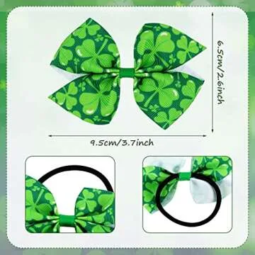 Whaline 12Pcs St. Patrick's Day Bow Hair Ponytail Holders Shamrock Clover Prints Bow Hair Scrunchies Green White Hair Ties Irish Holiday Elastic Hair Bands for Women Girls Teens Hair Accessories