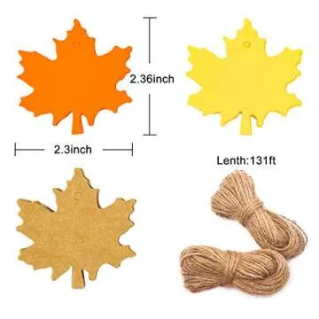 Show moreEnhance your autumn celebrations with the stunning Whaline 150 Pcs Fall Gift Tags Maple Leaves Favor Paper Tags. Perfectly crafted to evoke the essence of fall, these charming tags come in a delightful assortment of three vibrant colors: pumpkin, golden yellow, and classic kraft. Each color set offers 50 high-quality paper tags, allowing you to seamlessly mix and match for every occasion. To top it off, these tags come with two lengths of natural jute twine amounting to a generous total of 40 m (131 ft), providing ample material for any decoration or craft project.