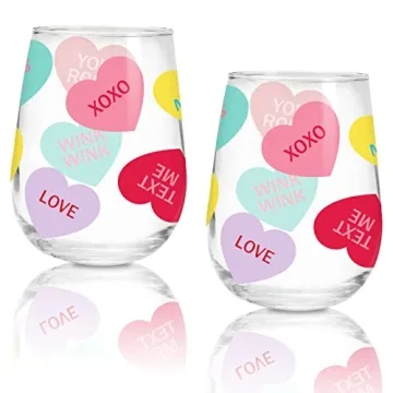 Whaline 17oz Valentine's Day Stemless Wine Glasses Gift for Her 2Pcs Colorful Conversation Heart Drinking Glasses Valentines Tumbler Cups for Valentine's Day Party Supplies Kitchen Decorations