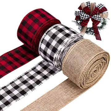 Show more Transform your holiday crafting with the stunning Whaline Wired Edge Ribbons set! This fabulous collection features three beautifully designed ribbons: a rich Black Red Plaid Ribbon, a classic Black White Buffalo Plaid Ribbon, and a versatile Burlap Craft Ribbon. Each roll stretches across a generous length of 10 yards (totaling to 30 yards), making it perfect for all your festive projects, from creating eye-catching bows to gift wrapping. Measuring 2 inches in width, these ribbons are ideally sized for your creative needs. Crafted with a wired edge, they not only hold their shape beautifully but are also incredibly easy to manipulate, unlocking a world of creative possibilities.
