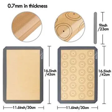 Introducing the Whaline 3Pcs Silicone Baking Mats, your new baking essential designed for the passionate home chef. These mats fit **standard half-size baking sheets** (16.5" x 11.6") perfectly, making them versatile tools for various culinary tasks – from baking cookies and pizzas to kneading bread and rolling pastries. With a mat thickness of **0.7mm**, they are sturdy enough to withstand high temperatures, while ensuring even heat distribution thanks to the fiberglass mesh construction....