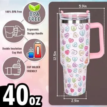 Whaline 40oz Valentine Tumbler with Handle Straw and Lid Love Heart Travel Coffee Tumbler Cup for Women Girlfriend Besties Wife Lover Spouse Gifts