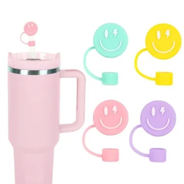 Show moreIntroducing the Whaline 4Pcs Smiling Face Straw Covers, the perfect blend of fun and functionality for your drinkware! Crafted with high-quality, safe silicone, these delightful straw toppers come in a charming set of four vibrant colors: pink, purple, mint green, and yellow. Designed to fit most 30 oz and 40 oz tumblers with handles, each cover measures approximately 10 mm (0.4 inch) in diameter, ensuring a snug fit that not only adds a whimsical touch to your cup but also keeps your beverages protected. Beautifully crafted with a smiley face pattern, these straw covers are not only practical but also visually appealing, making them an excellent accessory for parties, picnics, and everyday hydration.