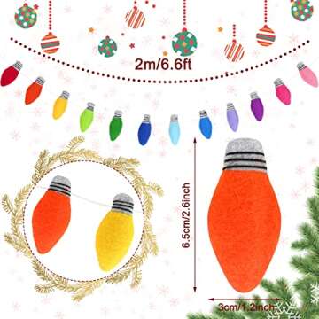 Show moreIlluminate your festive season with the enchanting **Whaline 6.6Ft Christmas Felt Light Garland Banner**! Measuring an impressive 2 meters (6.6 feet) in length, this delightful garland boasts twelve vibrant, three-dimensional light bulb shapes that evoke the spirit of Christmas cheer. Crafted from premium felt material, these colorful decorations are not only visually stunning but are also designed to last through many holiday seasons. With sturdy thin rope securing the lights, this garland brings a playful charm to various spaces in your home. Create an inviting and warm ambiance for gatherings and celebrations with this beautifully crafted banner!