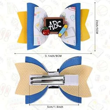 Whaline 6Pcs Bow Hair Clips: Apple, Blackboard Barrettes in Colorful Pu Leather for First Day of School, Classroom Girls, Students, Kindergarten