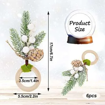 Whaline Christmas Napkin Rings Large Winter White Berries Pine Cones Napkin Holder Rustic Farmhouse Napkin Holders for Xmas Winter Wedding Dinner Party Table Setting Wall Hanging Decoration, 6Pcs