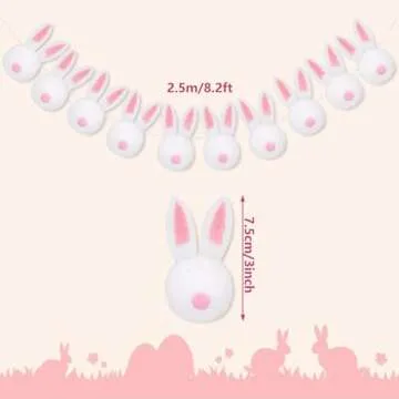 Whaline Easter Felt Garland Handmade Bunny Ball Banner Pink White Rabbit Fluffy Hanging Ornament for Spring Holiday Party Indoor Outdoor Home Office Decor Supplies, 8.2Ft