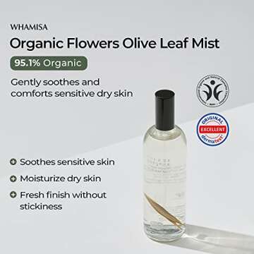 Why You Will Love This Product? Not just a simple spray, the Whamisa Organic Flowers Olive Leaf Facial Mist transforms your skincare routine into a luxurious moment of self-care. You'll appreciate the delicate mist that envelops your skin in a nutrient-rich veil, instantly revitalizing your complexion while promoting emotional well-being thanks to its soothing formula. Whether you are looking to lock in moisture or simply enjoy a refreshing pick-me-up throughout the day, this facial mist will quickly become a beloved addition to your beauty regimen. Experience the soothing embrace of nature with every spritz!
