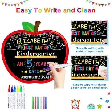 WhatSign First Day of School Sign Board - Double Sided 10.3" X 11.3" First Day of School Apple Chalkboard - Back to School 1st Day of School Sign for Kids