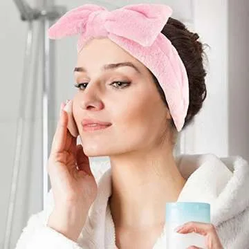 Fashioned with an adorable bow design at the top, each headband is made from soft microfiber fleece and double-layered high-quality coral velvet, ensuring comfort against your skin. Their impressive elasticity allows them to fit most head sizes, making them suitable for everyone. Say goodbye to the hassle of hair getting in the way during your beauty routine!