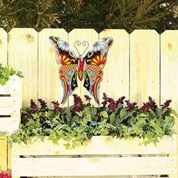 Show moreIntroducing the Whimsical Butterfly Metal Wall Art, a stunning centerpiece designed to enhance your home or garden with its vibrant colors and intricate design. This delightful decoration is part of the renowned Talavera collection, known for its eye-catching aesthetics that reflect joy and creativity. Crafted expertly, this butterfly not only brings a burst of color to your space, but also endures the test of time with a protective clear coating that prevents rust and fading, even when exposed to the summer sun. It measures a perfect 13x12 inches, making it a versatile choice for your patio, backyard fence, or as a cheerful focal point on an arbor.