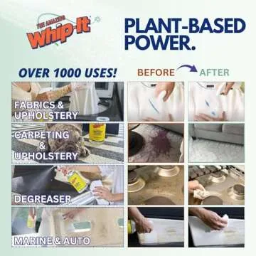Show moreIntroducing **Whip-It Concentrated Stain Remover**, the ultimate solution for tackling even the toughest stains with ease. Whether you're a busy parent dealing with playground mishaps, or someone looking to restore your treasured fabrics and furniture, this powerful stain remover is your ideal companion. Designed by a brand recognized for its commitment to quality, Whip-It boasts a **natural plant-derived formula** that effectively combats nasty stains like red wine, coffee, grease, and more. You can rest assured knowing you're using a cleaner that's safe for your family and the environment.