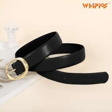 WHIPPY Leather Belt for Women Casual Waist Belt with Gold Buckle Fashion Ladies Belt for Jeans Pants Dress,Black,XXL