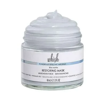 Whish Blue Matcha Restoring Mask - Green Tea & Shea Butter Detox, Purify, & Balance Skin - Hydrating Face Mask To Rejuvenate Oily, Tired Skin - Paraben & Sulfate Free - 2 fl oz