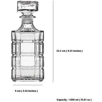 Show moreIndulge in the art of fine drinking with our Whiskey Decanter Crystal Set. This exquisite glass decanter is designed not just for whiskey enthusiasts, but for anyone who appreciates a touch of elegance in their beverage experience. Crafted with precision and class, this 33.81 oz carafe promises to elevate your drinking rituals, making every sip a memorable event. Whether it's Scotch, brandy, bourbon, or even the sweetest of juices, this decanter ensures that every drink retains its freshness and exceptional flavor, reminiscent of the first pour each time.