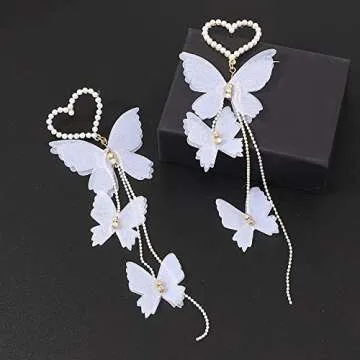 White Butterfly Beaded Heart Earrings for Women Dangle Drop Earrings Cute Earring