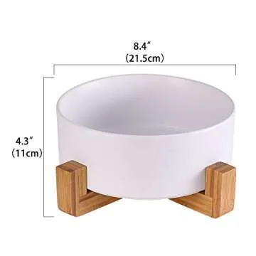 White Ceramic Dog Bowls with Wood Stand, Dog Water Bowls and Food Dish, Heavy Weighted or No Tip Over Dog Comfort Food Bowls, Stoneware Pet Bowl,Extra High Capacity 8.4" Diameter, for Large Dogs
