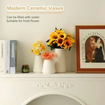 White Ceramic Vase - Set of 3 Flower Vase for Modern Home Decor, Boho Vase for Living Room, Shelf, Table, Bookshelf, Mantel and Entryway Decor