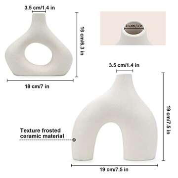 White Ceramic Vases - Round Matte Donut Design for Pampas Grass and Flowers - Ideal for Minimalist, Boho, and Home Decor (Set of 2)