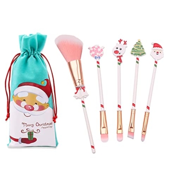 White Christmas Themed Makeup Brushes Set, Santa Claus Pink Candy Christmas Tree Elk Bell Contouring Eye Shadow Concealer Eyebrow Lip Brushes 5Pcs/Set