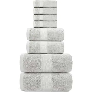 White Classic Luxury Bath Towel Set of 8 Pieces - 100% Turkish Cotton Highly Absorbent Towels for Bathroom, 2 Luxury Bath Towels 700GSM, 2 Hand Towels, 4 Washcloths, Silver
