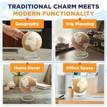 Show more Discover a unique way to commemorate your travels with our White Cork Globe with Push Pins. Featuring a sleek, modern design, this 6-inch globe is more than just a stylish piece of decor; it's a personalized map of your adventures. Adorned with a natural cork surface, it allows you to easily mark your journey with 50 vibrant red pins, making each destination a treasured memory.