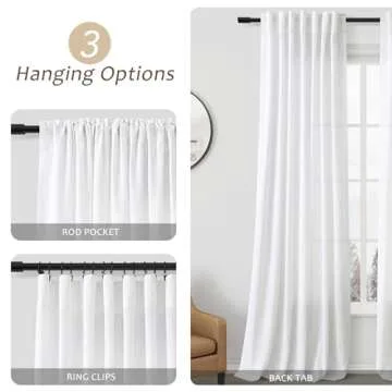 White Curtains 90 Inches Long Cotton Linen Rod Pocket Back Tab Semi Sheer White Drapes Privacy Light Filtering Lightweight Aesthetic Modern Elegant Boho Window Curtains 2 Panel Sets for Living Room
