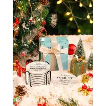 White Elephant Gifts for Adults, Funny Coasters Set of 8, Funny Gag Gifts for Adults, House Warming Gifts New Home, Marble Style Absorbent Drink Coasters with Cork Base, Home Decor, 4 inches