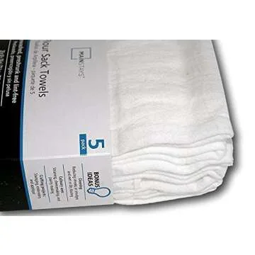 Show moreDiscover the charm and functionality of our **White Flour Sack Towels - Pack of 5**. Crafted from **100% premium cotton**, these towels offer an unbeatable blend of softness and durability, making them a must-have in every kitchen. Their generous size of **18 inches by 28 inches** allows for versatile use, whether you're drying dishes, cleaning surfaces, or using them as a kitchen cloth. The classic plain weave design in solid white ensures a seamless fit with any decor style, bringing a timeless touch to your culinary space. Moreover, with easy care instructions, just toss them in the washing machine with cold water and mild detergent, and they’ll emerge fresh and ready for your next task.