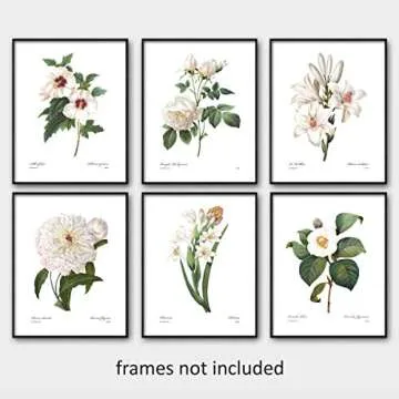 Show more Discover the beauty and elegance of our White Flower Art, French Botanical Prints – a stunning collection of vintage floral decor that breathes new life into any space. Each print captures the essence of nature's delicate artistry with exquisite detail and vivid colors, transforming your walls into a gallery of botanical beauty. Handmade in the USA and measuring a convenient 8x10 inches, these unframed works of art effortlessly fit into standard frames, allowing you to personalize your display to match your unique taste.