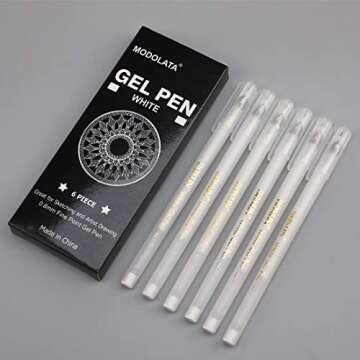 White Gel Ink Pens - 0.8MM Fine Tip, for Artists, Drawing, Sketching, Black Paper, Pack of 6